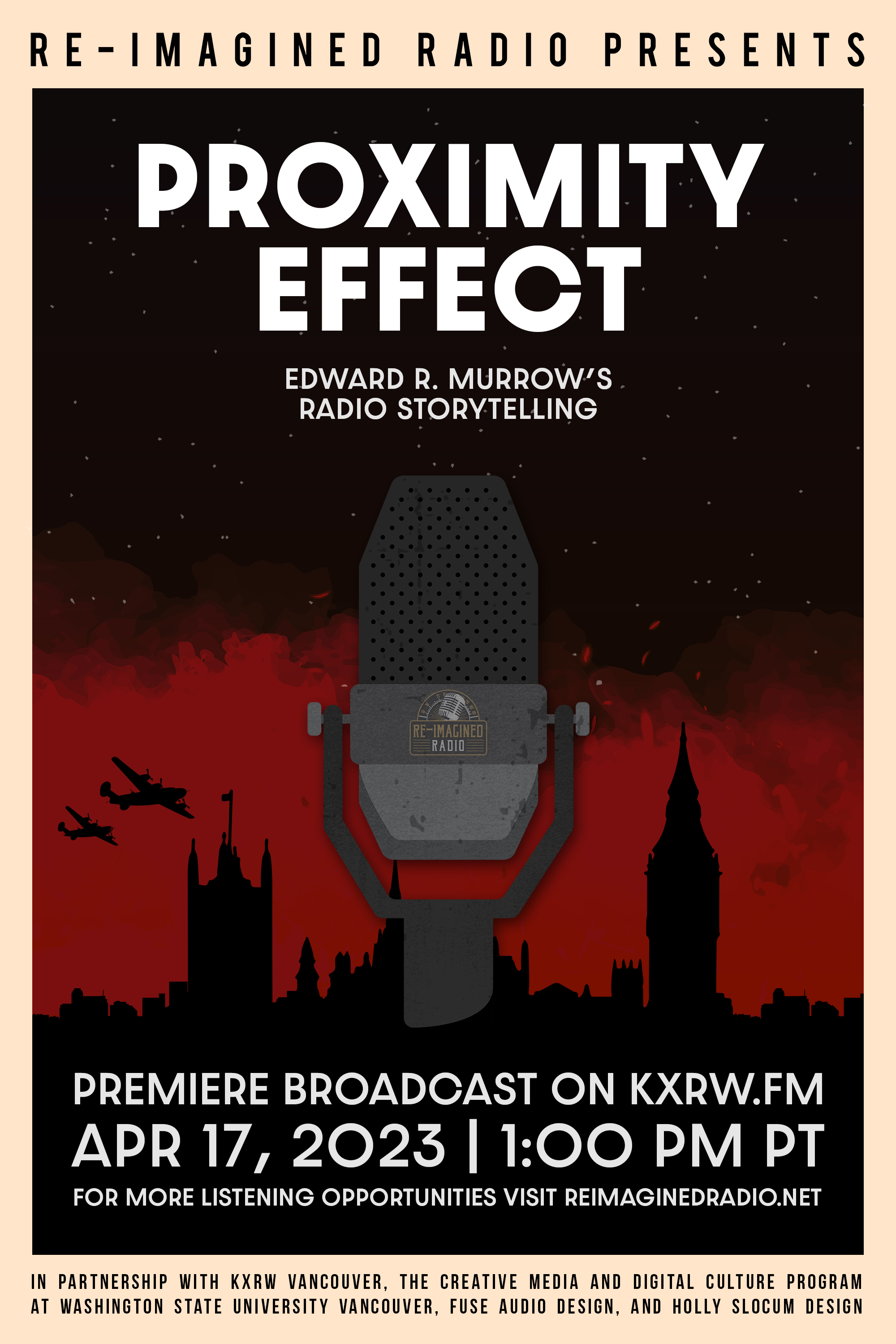 Re-Imagined Radio considers Edward R. Murrow’s efforts to help American listeners understand "The Blitz," fifty-seven consecutive days of German air force bombing of London during World War II. His keen observation, vivid verbal descriptions, and attention to sounds provided a sense of what was happening. What could be observed. Radio historian Jeff Porter calls the unmatched immediacy Murrow provided listeners, "the proximity effect" (Porter Lost Sound 90) and says it prompted a new form of radio storytelling. We sample several examples of Murrow's radio storytelling, and its "proximity effect," in this episode.